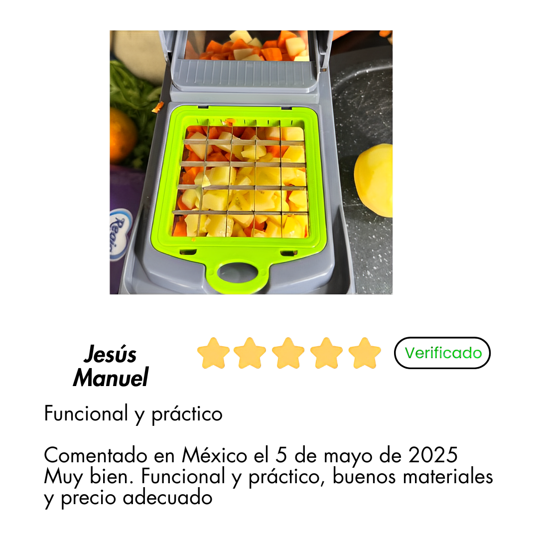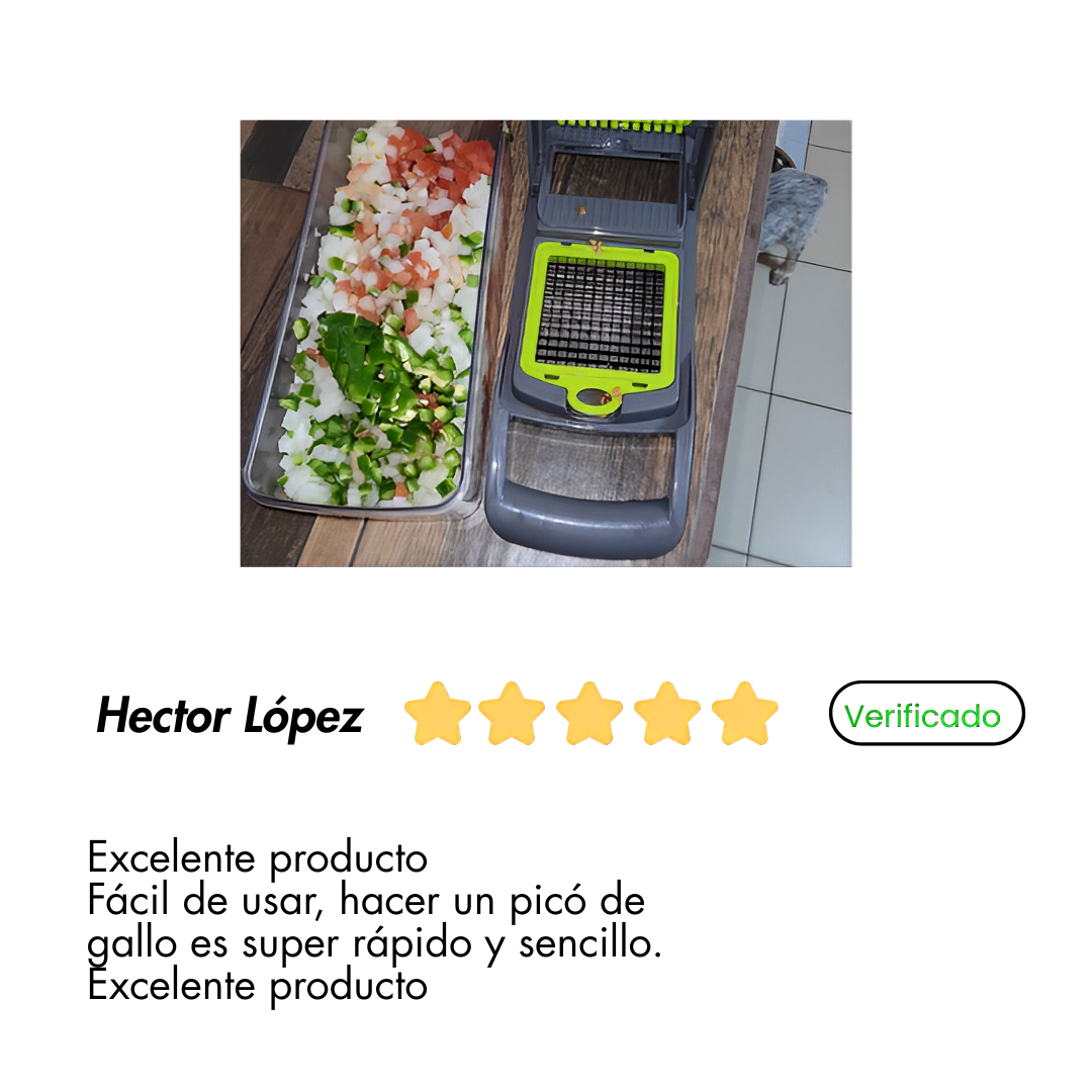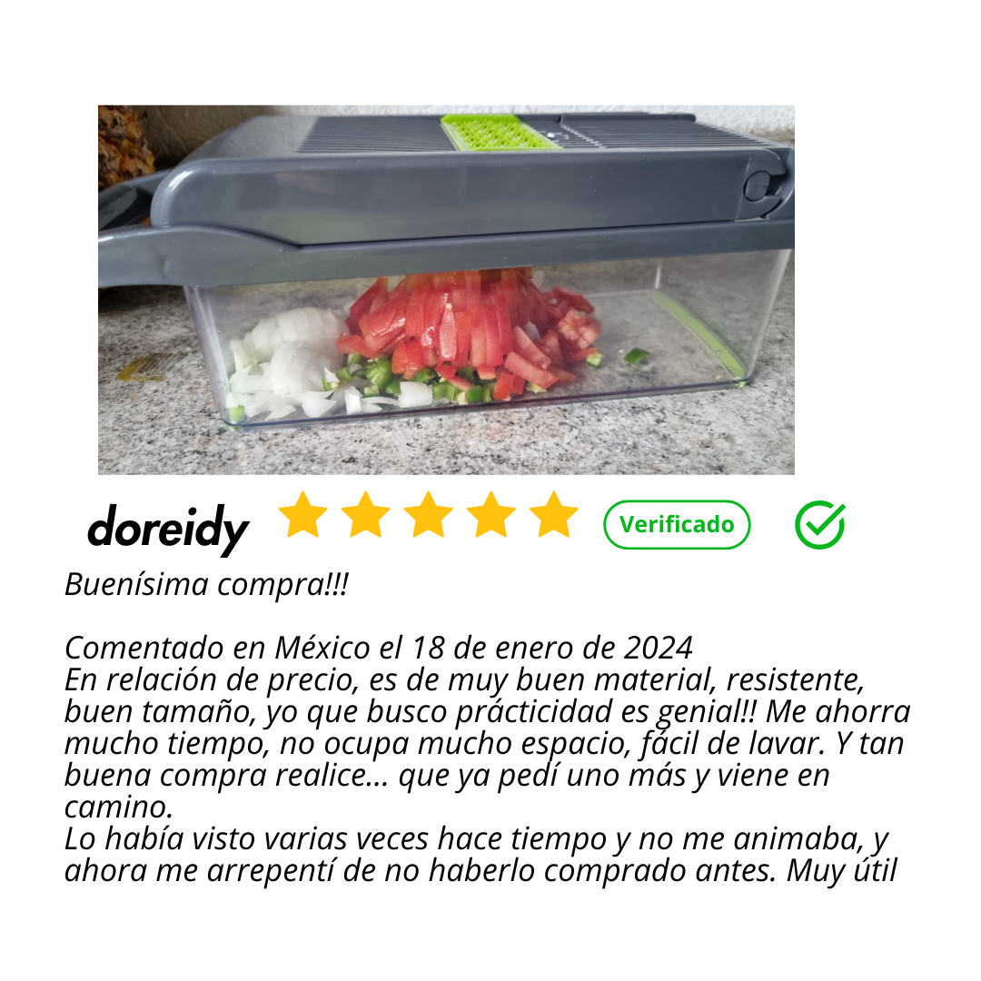 Imaginate llegar del supermercado y en pocos minutos tener todo listo para tu receta favorita, sin llanto al cortar cebolla, sin desperdicio de tiempo, y con cortes tan uniformes. Con nuestro Cortador multifuncional para verduras© esposible.✅