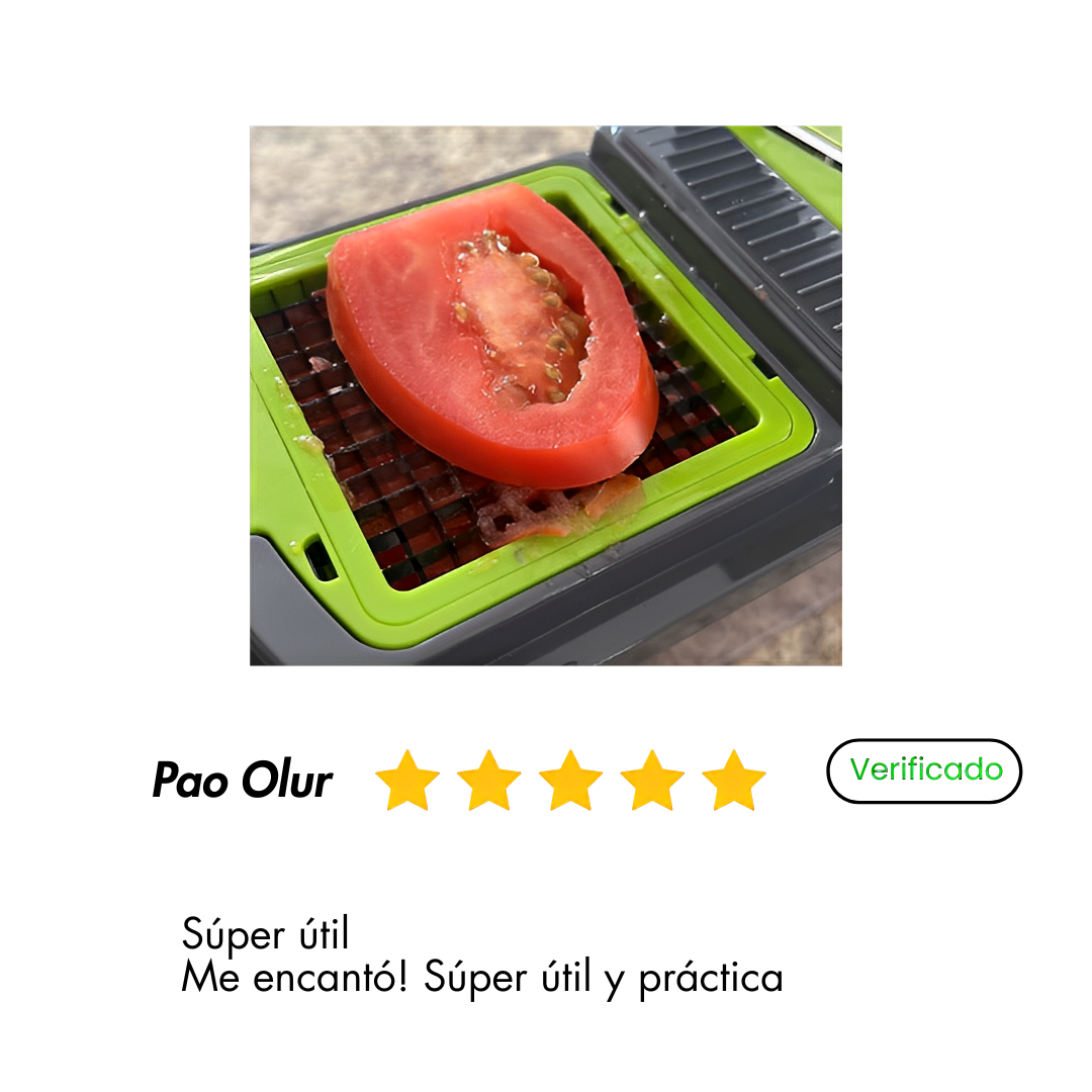 Imaginate llegar del supermercado y en pocos minutos tener todo listo para tu receta favorita, sin llanto al cortar cebolla, sin desperdicio de tiempo, y con cortes tan uniformes. Con nuestro Cortador multifuncional para verduras© esposible.✅